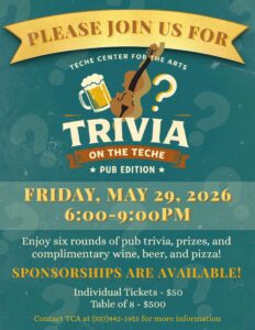 It’s time for our Annual Fundraiser, Trivia on the Teche – Pub Edition. You don’t want to miss this good time!